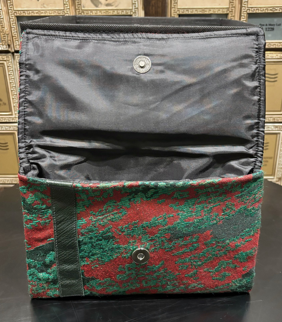 A satchel made from retired scenery pieces from Wicked on Broadway.