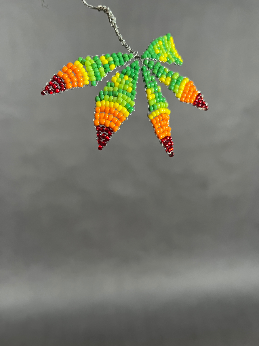 This Acer japonica, or Japanese Maple, leaf is frozen in time at the moment of transition from summer to autumn-- changing from green to red before your eyes!