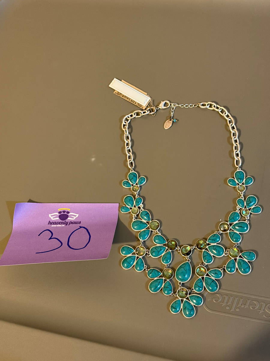Adjustable Necklace withal and light green stones.