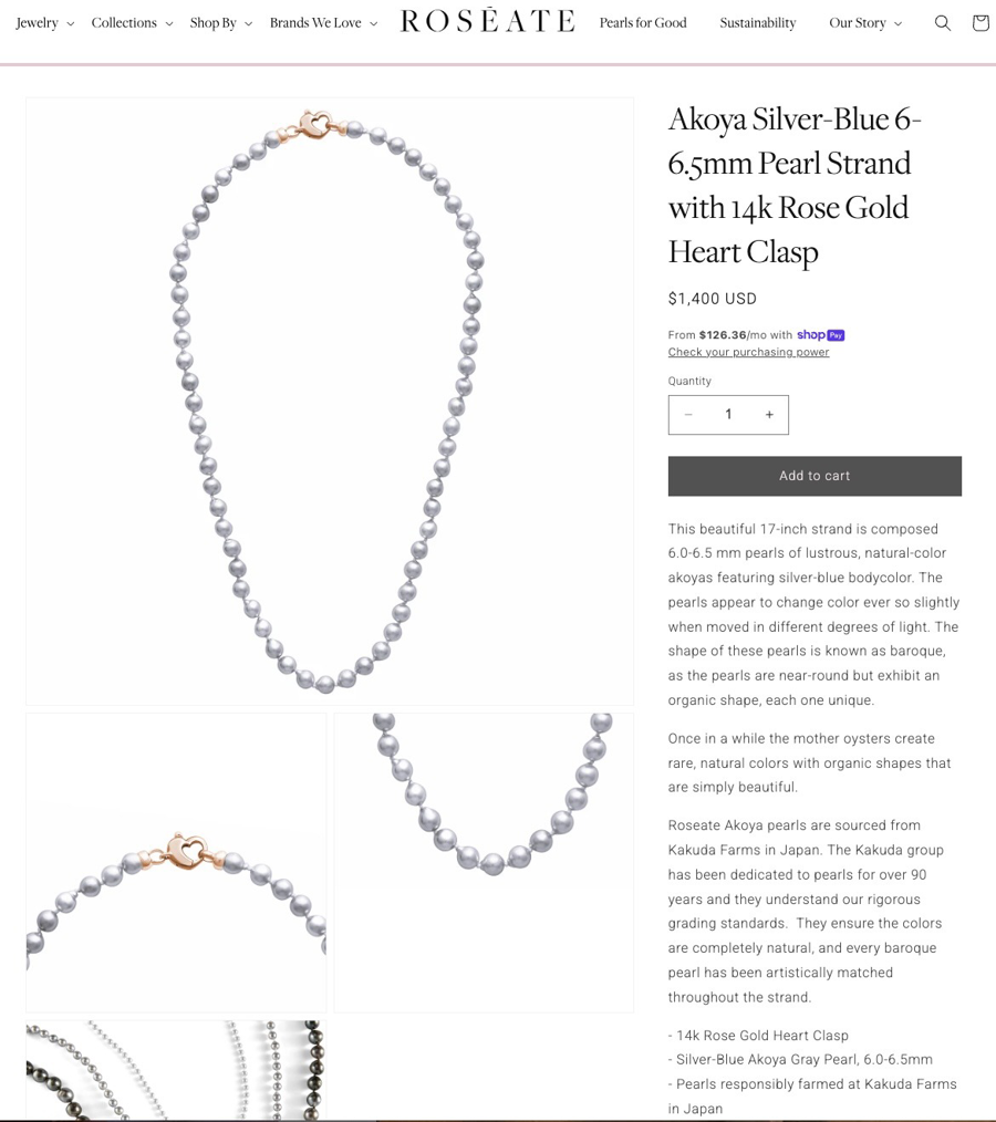 Kakuda Farms Japan Silver-Blue Akoya Gray Pearl Necklace: - 14K Rose Gold Heart Clasp - Silver-Blue Akoya Gray Pearls, 6.0-6.5MM - 17 inches