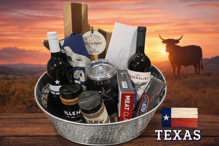 Bring the bold flavors and charm of Texas right to your home! This curated basket includes everything a true Texan—or Texas enthusiast—will love: