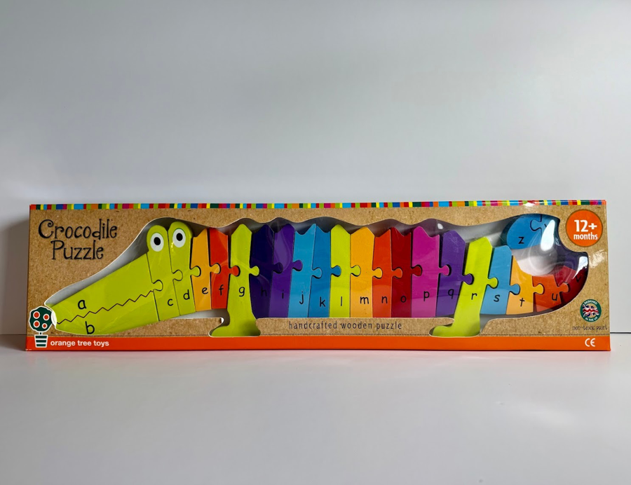 A handcrafted wooden crocodile puzzle that teaches kids the alphabet while they assemble the colorful puzzle. For children 12 months and above. New. Orange Tree Toys.