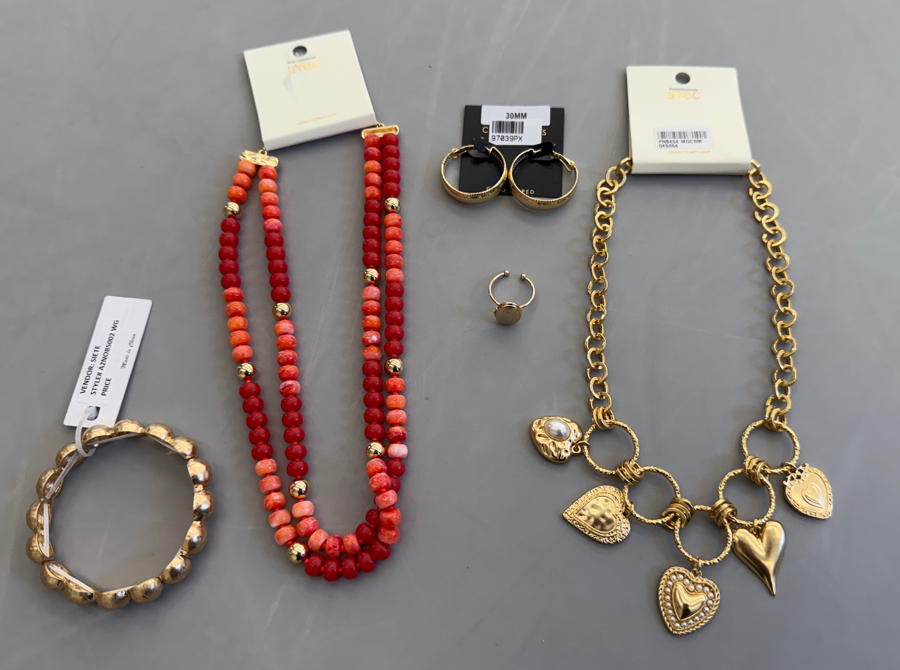 This set was generously donated by Altar'd State! The winner of this set will receive a gold hearts necklace, beaded necklace with shades of red and orange, gold locket ring, gold hoops, and a gold bracelet. Check out their products at altardstate.com