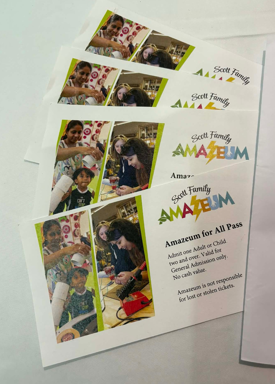 Amazeum: 4 tickets Fantasy fun 3d: 3d printed infinity cube fidget Crepes Paulette: $10 Gift Card Stitchcraft & Whimsy: Cow Plush