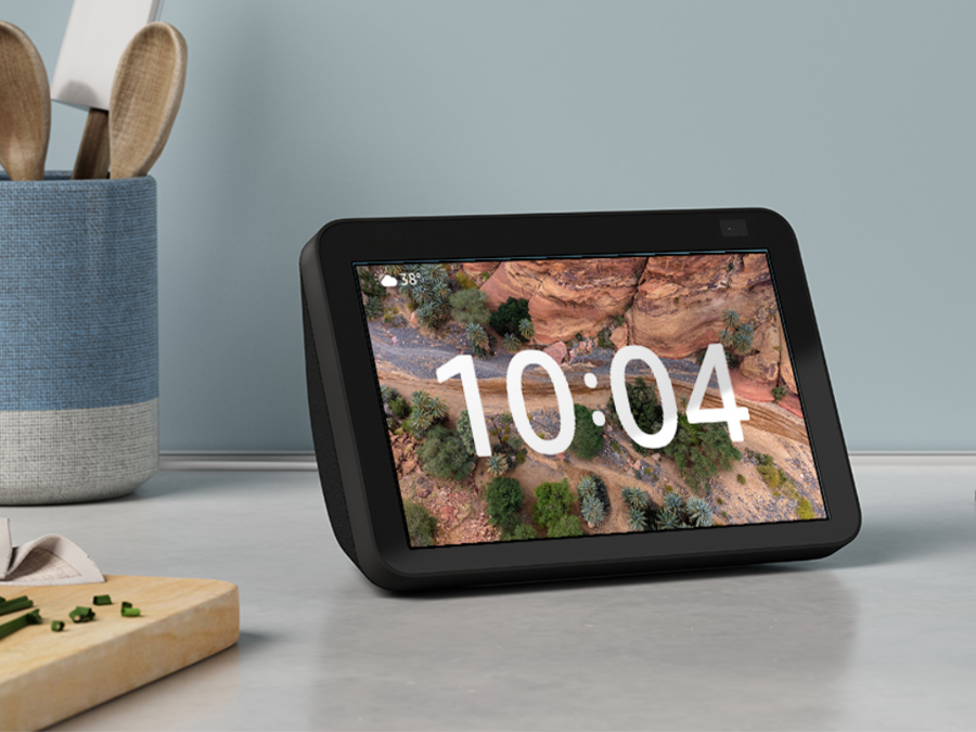 The Amazon Echo Show 8 is a smart display with an 8-inch HD screen, spatial audio, and a built-in smart home hub. It features a 13-megapixel camera with auto-framing for video calls and a physical privacy shutter, and it runs on Alexa, providing hands-free voice control for a wide range of tasks. Key features include setting timers, making calls, controlling smart home devices, streaming music and video, and using it as a digital photo frame. Donated by Astound