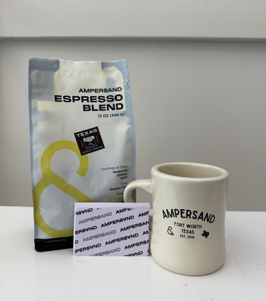 This basket was generously donated by Ampersand! The winner will receive an Ampersand signature espresso blend, a $25 gift card to the coffee shop, and an Ampersand coffee mug. Check them out on Instagram @ampersandtx