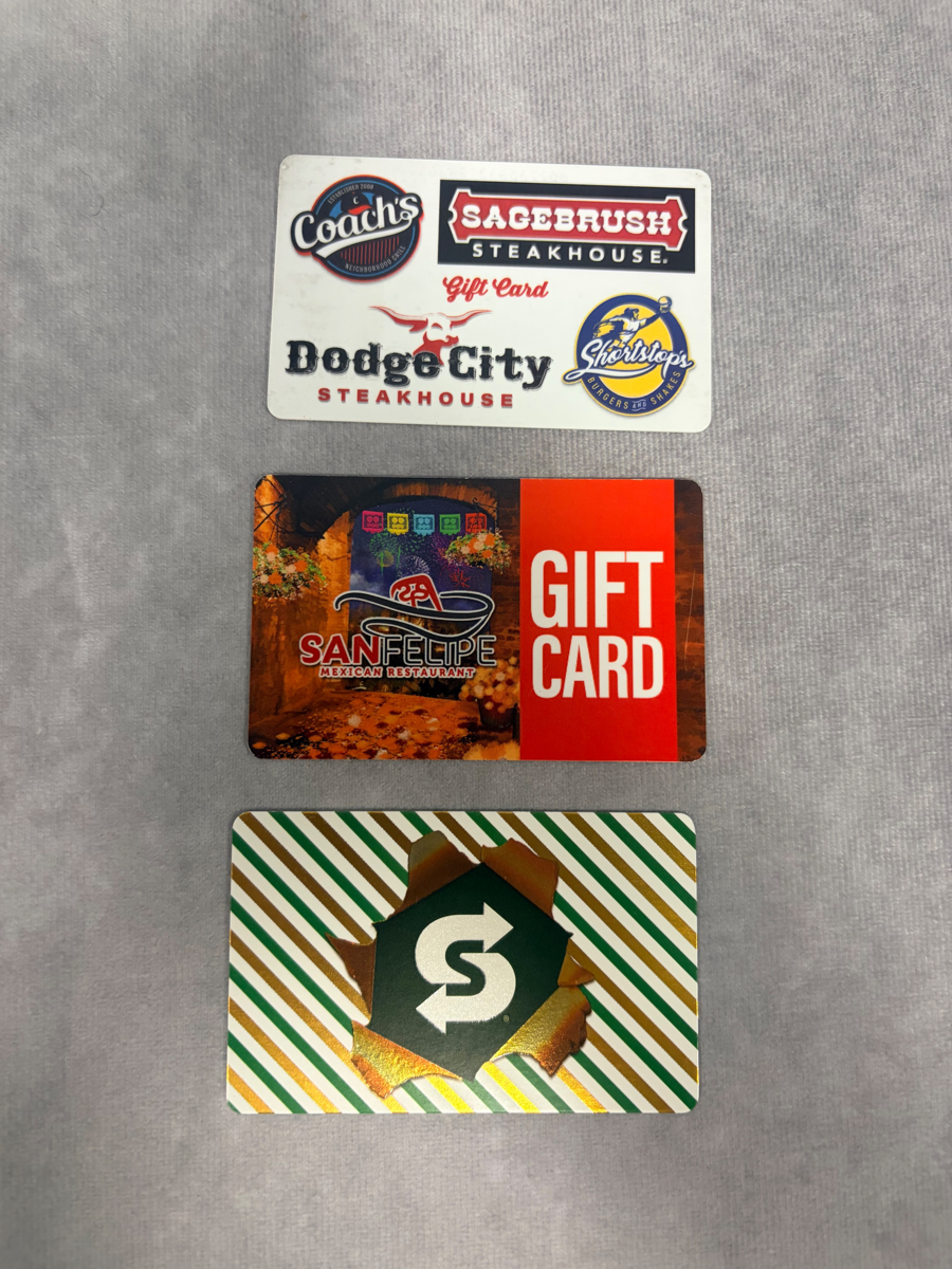 $25 Coaches GC. $25 San Felipe GC. $10 Subway GC.