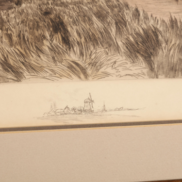 Antique, hand-colored Dutch School Landscape etching, with copyright information as follows upper left: "Published by James Tyroler, New York, 1901," with printed remarque at lower right, matted and framed. Overall dimensions: 21.75" x 30.5"