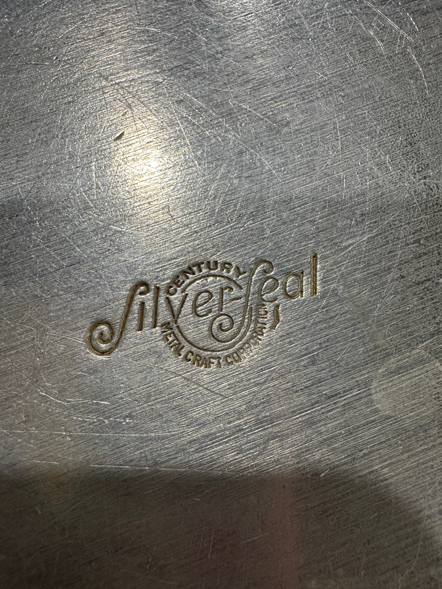Silver Seal cookware, which was manufactured by the Century Metalcraft Corporation. It is known for its heavy-duty, durable cast aluminum construction. The product in the image is a vintage hammered aluminum dutch oven with a lid. The lids were originally metal, but during World War II, the company switched to making oven-proof glass lids due to metal shortages. Silver Seal cookware was often made of hammered cast aluminum and included items like Dutch ovens, roasters, and omelet pans. The company was a forerunner of and later rebranded as Guardian Ware. The cookware is considered vintage, with some pieces dating back to the 1930s. Comes with original care instructions, as seen in photo.