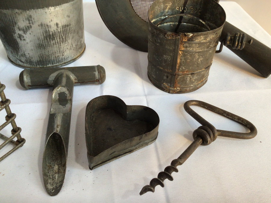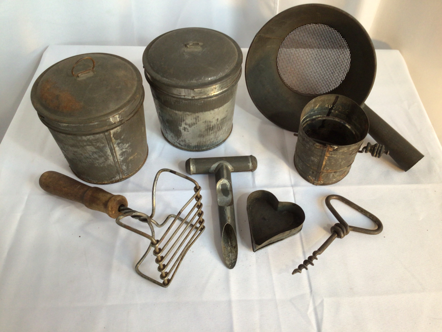 Antique, Tin Kitchen Lot, 8 Pieces