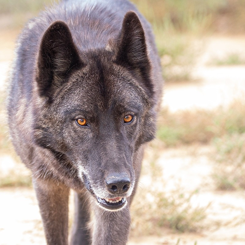 Paw prints from resident mid-content wolfdog Antoine on thick paper. Prior to being rescued, Antoine was purchased with the intention of making him a social media superstar! Unfortunately, when his owners entered into a messy separation, they placed Antoine at a boarding facility where he sat for over a year before the business decided to adopt him out to a new family. Unfortunately, he did not thrive in that environment, and within a few months we were contacted and asked to take him in. This stunning boy is nicknamed "Man-toine" as he is known to be a ladies' man. He also has this fun little habit when you enter his enclosure where he doesn't leave your side: you take a step, he takes one, which is adorable until you need to leave and he's doing his best not to let you!