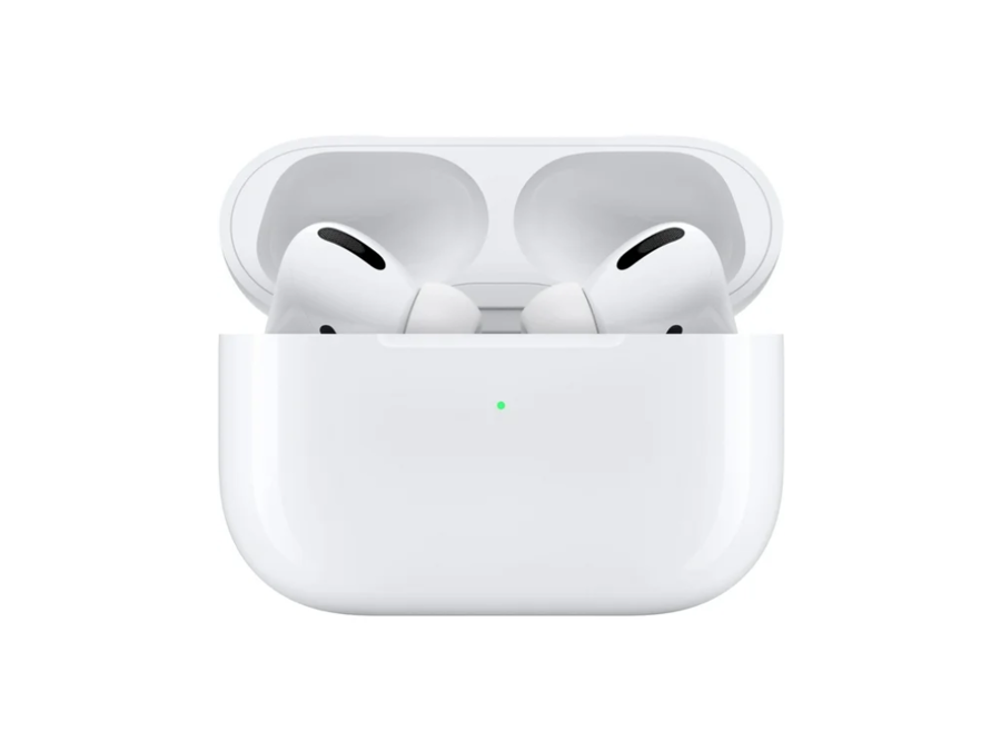 The AirPods Pro (1st generation) are wireless earbuds featuring active noise cancellation, Transparency mode, and Adaptive EQ. They use the H1 chip, have a customizable fit with interchangeable silicone tips, and are sweat and water-resistant (IPX4). They charge via Lightning or wirelessly through Qi charging and have a case with a front LED and a pairing button on the back. Model A2083