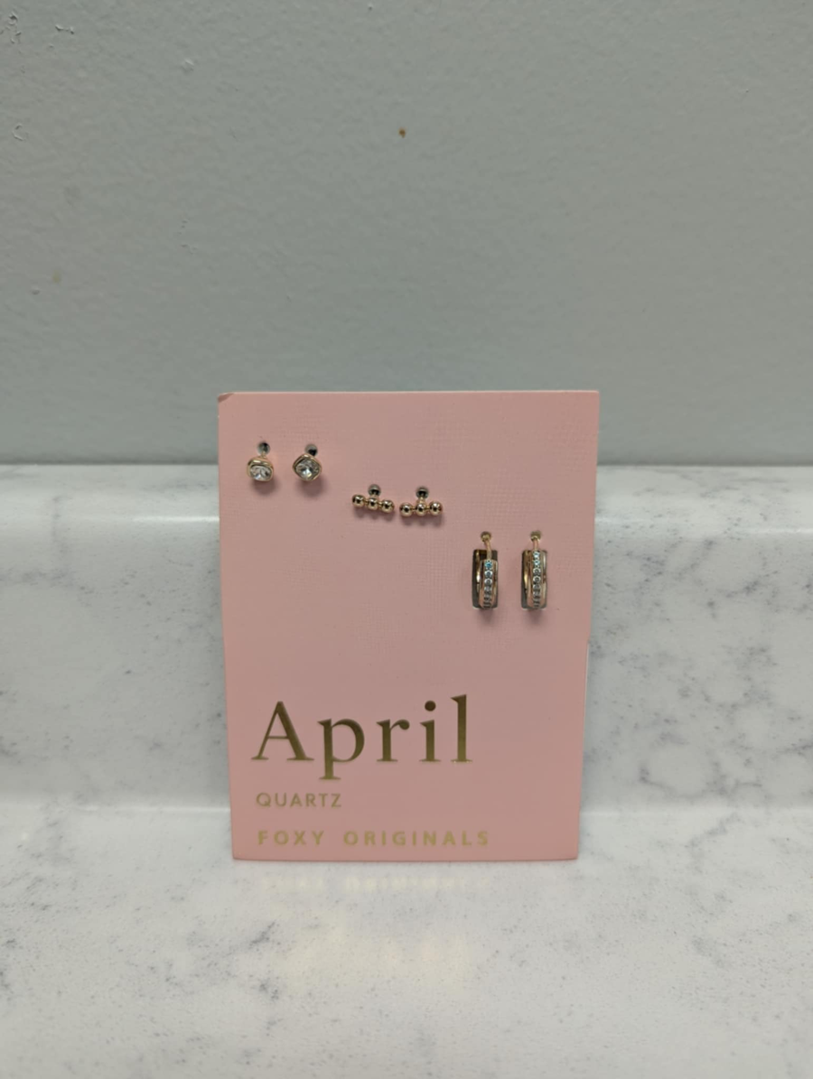 Set of 3 April birthstone quartz earrings by Foxy Originals.