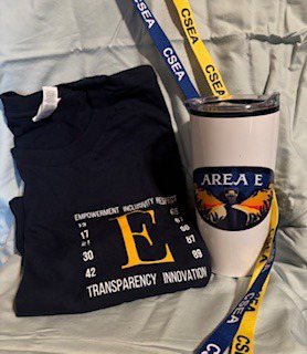 CSEA Area E Thermo travel coffee tumbler and unisex medium size shirt.