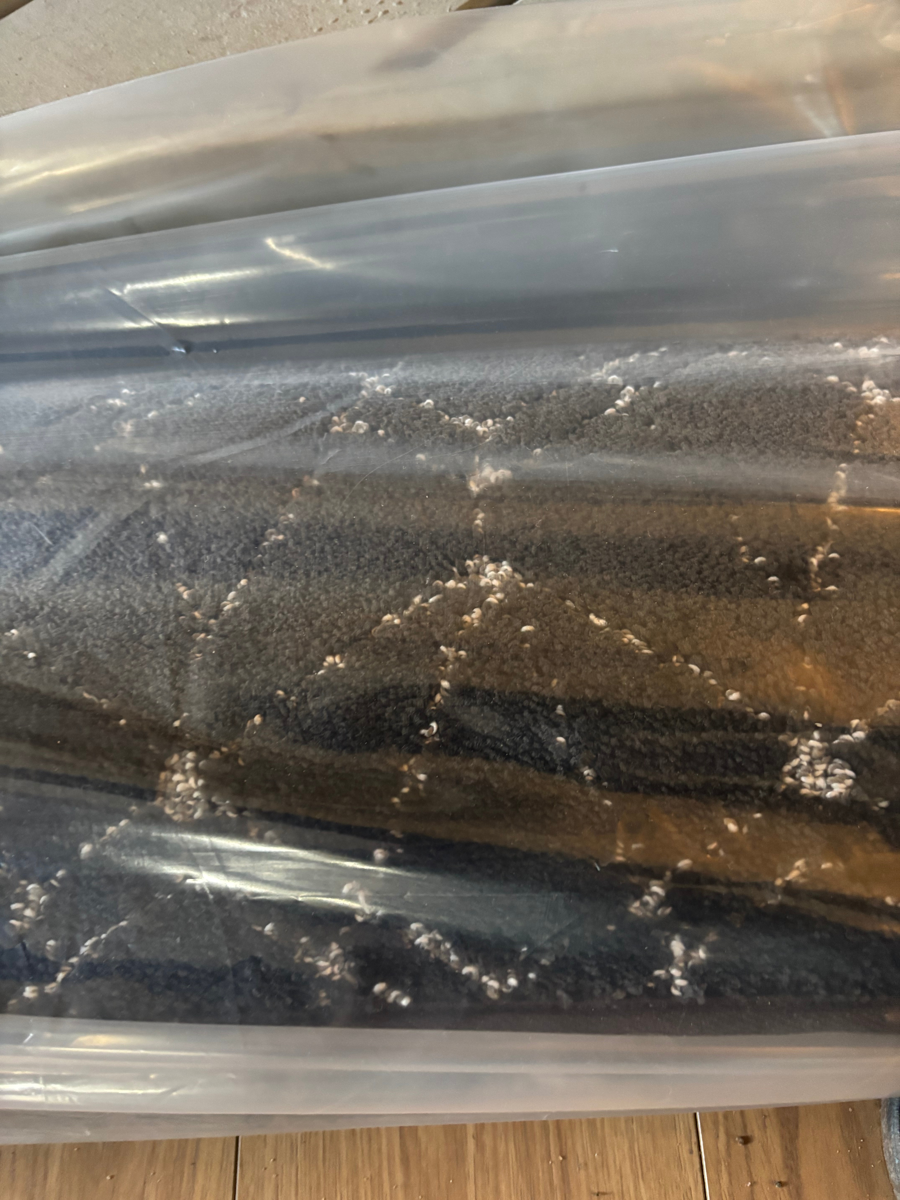 6.7’ by 7’ bound area rug. Geometric Black/Silver Pattern