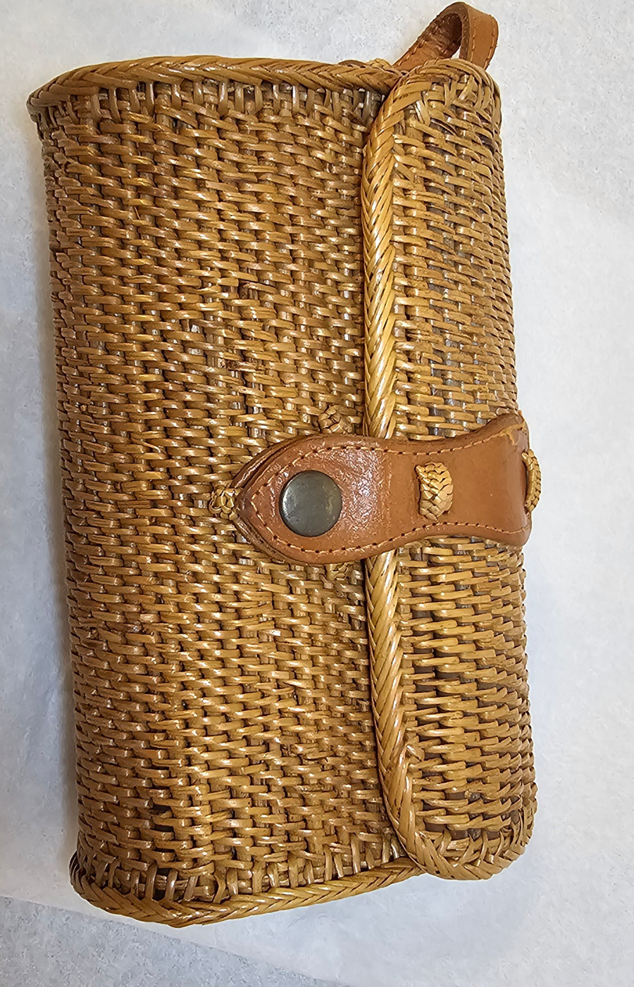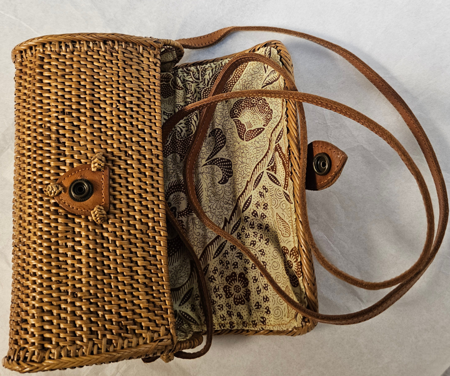 Elevate your style that tells a story. This bag a perfect blend of bohemian charm and sophisticated craftmanship. This bag has been handwoven using traditional techniques then “smoked” over coconut husks to achieve its rich, golden caramel hue and legendary durability. Lined with unique Batik fabric, ensuring that your accessory is truly one-of-a-kind. Finished with genuine leather straps and a secure button closure that ages beautifully over time offering a versatile style.