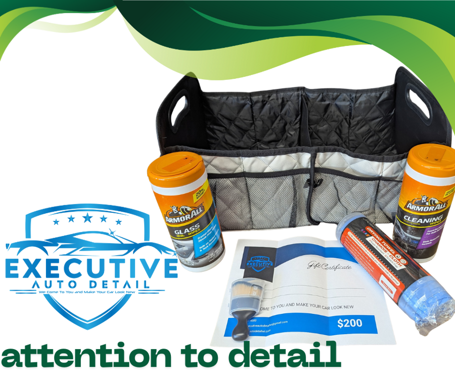 Experience the ultimate in vehicle care with our Executive Elite Detailing Package, designed for drivers who expect nothing less than perfection. This premium service delivers a complete deep clean—inside and out—restoring your car’s showroom shine and protecting its finish for months to come. This package includes a trunk basket and car upkeep supplies to keep things tidy!