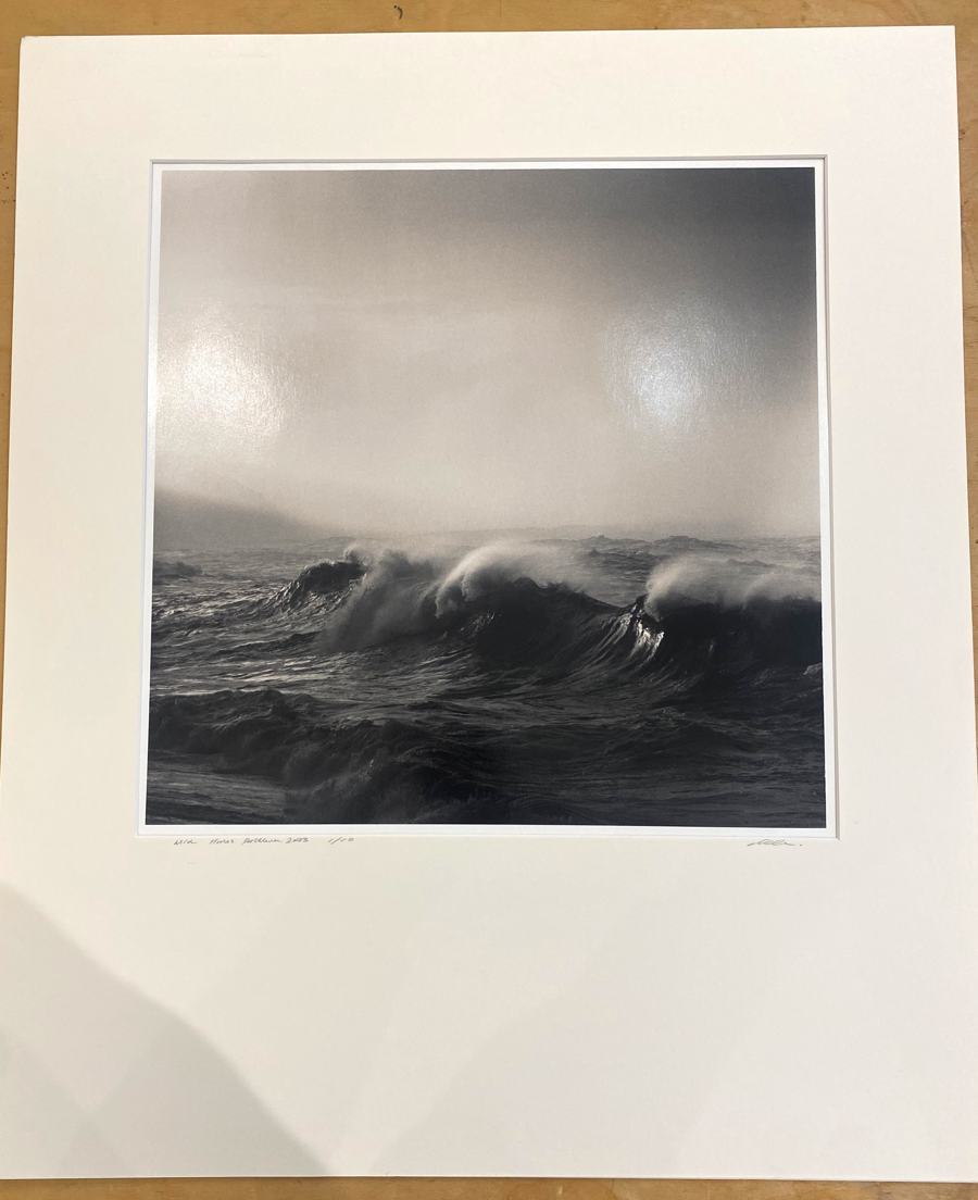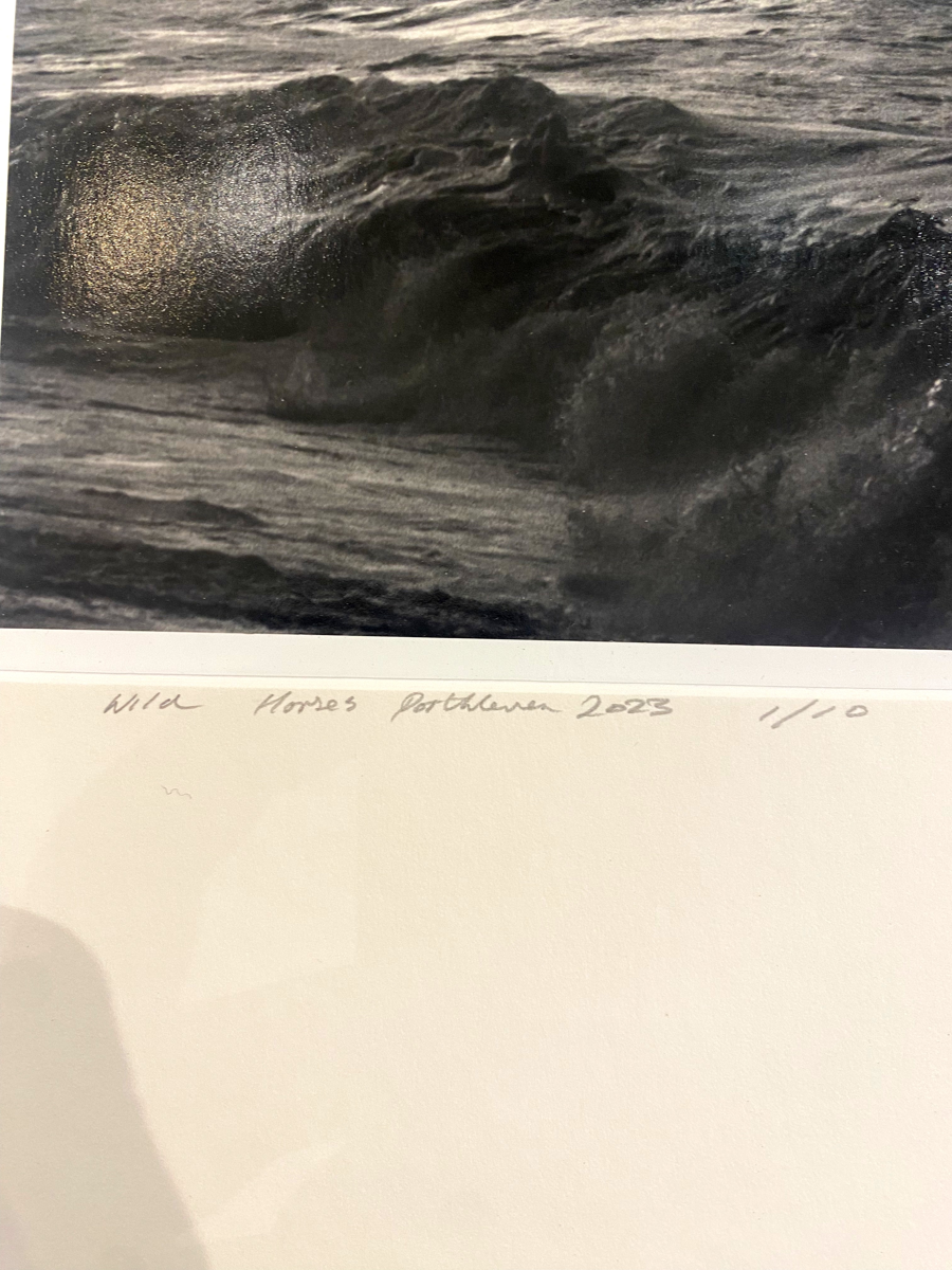 We are honored to have been kindly donated the first edition of this amazing image shot on Porthleven Beach; then split printed; selenium toned; sepia toned and finally mounted on board by the Artists; This epic work is a stunning example of craftsmanship and the awe inspiring atlantic ocean in full heaving; thick lipped tempest; embodied in the works title 'Wild Horses'