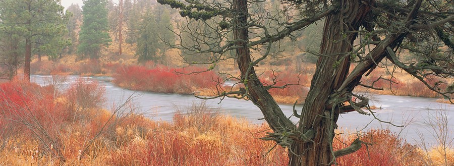Autumn Fire Juniper & Deshuttes River - small art print by Ross Wordhouse