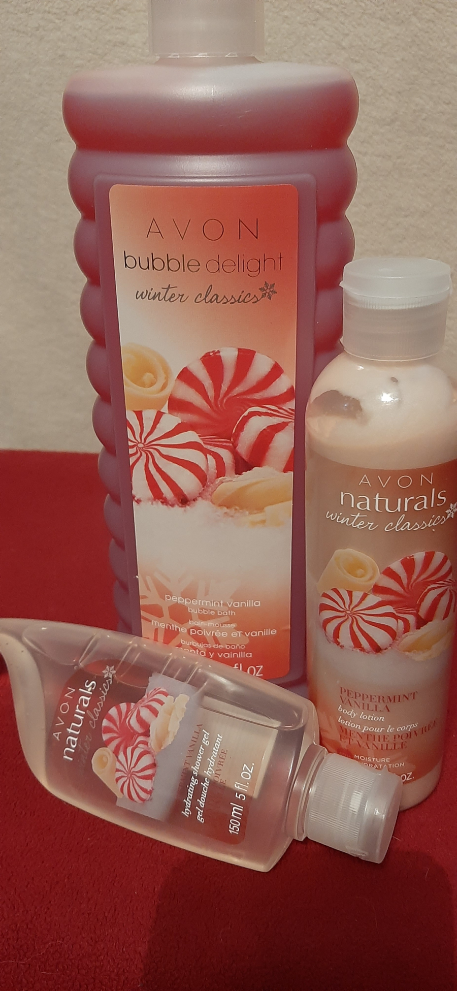 This set includes a refreshing Avon Winter Naturals Peppermint Vanilla Shower Gel that gently cleanses your skin while enveloping you in a soothing peppermint aroma. Enhance your bathing experience with the luxurious Bubble Bath, creating a relaxing atmosphere as you unwind. To complete your pampering session, the Body Lotion deeply moisturizes, leaving your skin soft and beautifully scented with the delightful blend of peppermint and vanilla. Treat yourself or a loved one to this enchanting set that captures the essence of winter bliss.