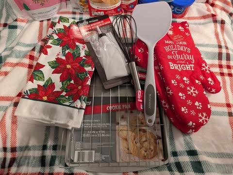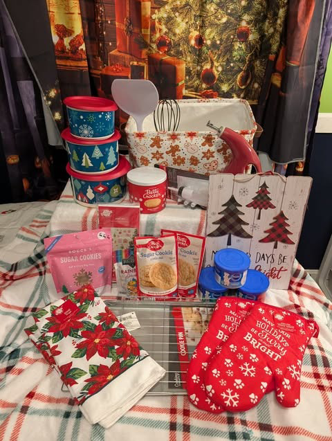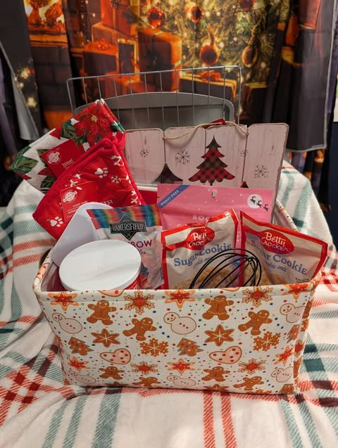 🎄🍪 Baking Bliss Basket 🍪🎄 Bring the magic of the holidays into your kitchen with the Baking Bliss Basket—a festive, fun-filled collection for anyone who loves to bake, decorate, and celebrate! This all-in-one holiday baking bundle has everything you need to create sweet memories, delicious cookies, and joyful treats for family, friends, and even your furry companions. ✨ What’s Included: 🍪 Sugar Cookie Mixes & Frosting – Everything you need to whip up perfect sugar cookies for decorating or gifting. 🧑🍳 Oven Mitts & Kitchen Towels – Stay safe and stylish while baking your holiday treats. 🍪 Cookie Sheet & Cooling Rack – Bake evenly and cool cookies to perfection. 🌈 Rainbow Sprinkles – Add colorful, festive fun to every creation. 🥣 Storage Bowls, Spatula, Whisk & Oil Dispenser Bottle – Essential tools for mixing, measuring, and prepping with ease. 🎂 Cake Decorating Kit – Take your cookies and cakes to the next level with creative decorating options. 🪵 Wooden Wall Sign: “May Your Days Be Merry and Bright” – Spread holiday cheer with charming kitchen décor. 🕯️ Goose Creek Betty Crocker Sugar Cookie 3-Wick Candle – Fill your home with the irresistible scent of freshly baked cookies. 🎨 Holiday Wall Art Decals – Add festive touches to your kitchen or dining space. 🐾 Bocce’s Sugar Cookie Dog Treats – Don’t forget your furry friends—they deserve a sweet holiday treat too! ✨ Perfect for holiday baking enthusiasts, families, or anyone looking to add a little extra sweetness to their season, the Baking Bliss Basket delivers everything you need to create delicious cookies, festive décor, and joyful memories. Let the baking fun begin! 🎁❄️