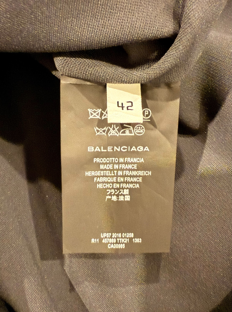 Looking for a New Year’s Eve dress? Look no further.Here is a unique opportunity to wear a French designer. This Balenciaga asymmetrical twist neck mini dress is in a crêpe jersey material. A classy vibe as seen on Kim Kardashian. Color : black Condition: Excellent, no staining or armpit wear Size: European 42, US 10