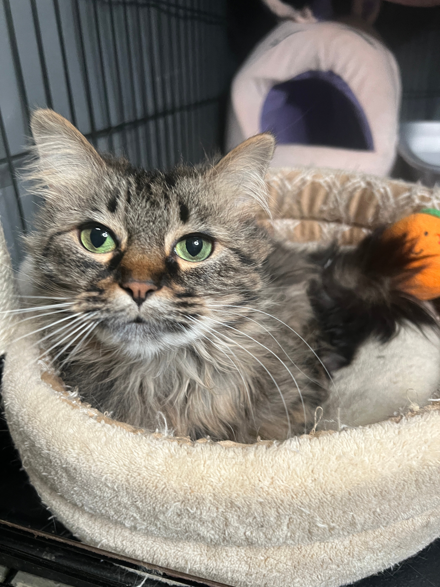 Personality-wise, Barbie is full of charm — she absolutely loves people, but she also has a very expressive “tortie-style” communication system that includes hisses and growls when she has something to say. Despite her sass, she is truly affectionate and deeply bonded with her caregivers once she trusts you.