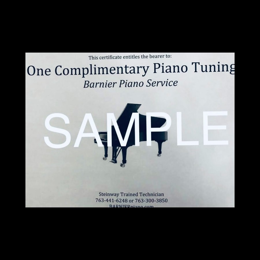 This certificate is good for one piano tuning service by Steinway trained technician Mark Barnier.