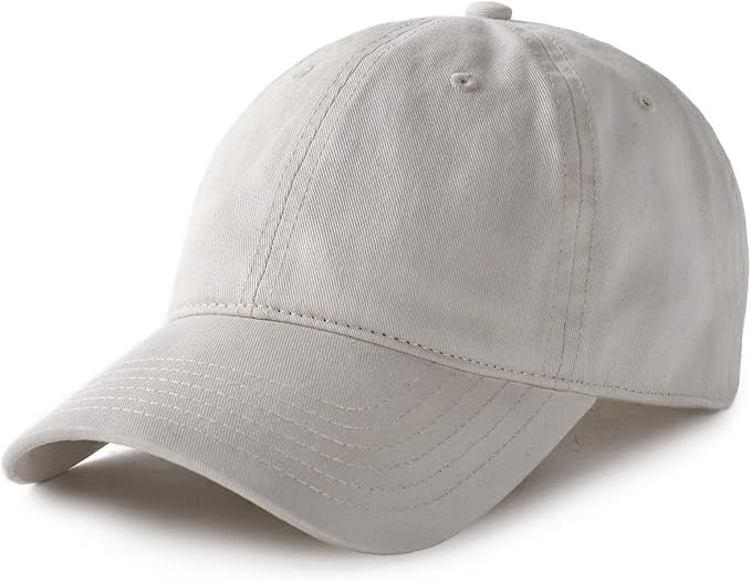 The stone-colored baseball cap is 100% washed cotton and adjustable. Unisex size - medium/large.