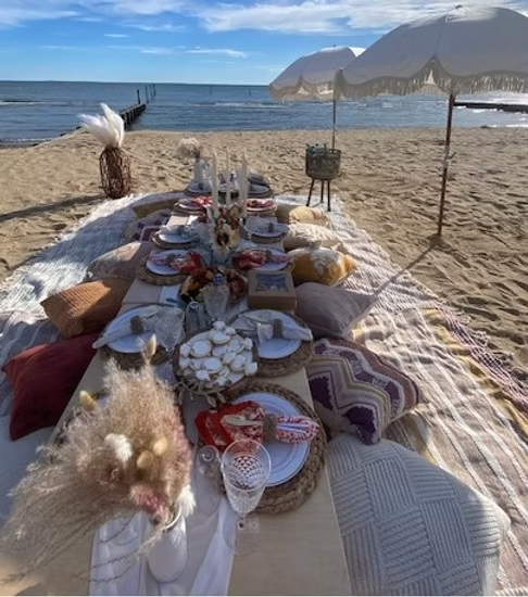Treat that special person to a two-hour picnic experience that they will never forget! Shoreline Alfresco (www.shorelinealfresco.com) is a woman-owned business that will handle all the set up and take down, so all you need to do is pickup some delicious food from Mystic Market (locations in Old Saybrook and Mystic) and show up with your favorite bottle of wine. Your custom-designed experience can occur any place within 15 miles of Westbrook, CT - your favorite park, beach or even your own backyard are options. The Old Saybrook and Westbrook town beaches have proven very popular with Shoreline Alfresco's clients. The company is a boutique pop-up picnic company that combines luxury design with a bohemian feel to create the ultimate alfresco experience. It will coordinate, style, set up, clean up and pack down your special occasion so you can enjoy an effortless experience. The set up includes a styled picnic setting designed to your specifications with layered rugs, seat pillows, candles/lantern, dried faux palm grass, silk flowers, a low wooden table fully decorated with quality plastic dinnerware, flatware, glassware, cloth napkins, table runners, still or sparkling water with ice & ice bucket. Your 2026 picnic will be scheduled with the owner. A $75 gift card to Mystic Market is included!