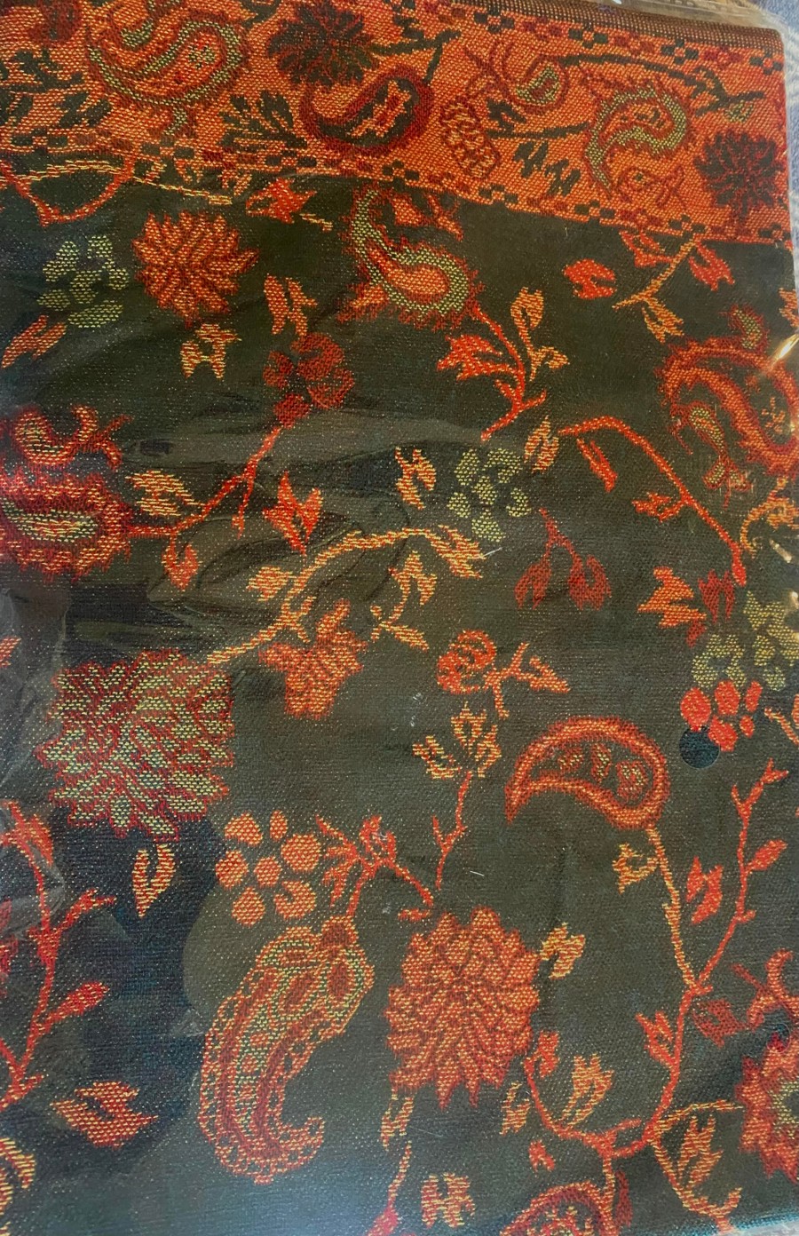 Beautiful Pashmina Shawl w/ Fringed Edges. The item was photographed in its plastic packaging, so colors aren't' as vibrant in the pictures.