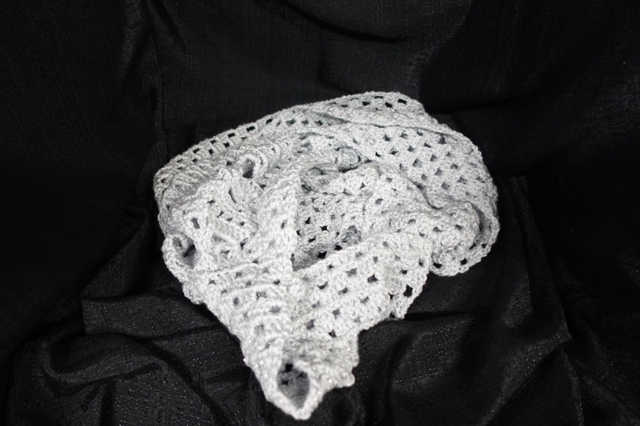 Looking for something unique and a little different? Here is the perfect addition to your winter wardrobe, a handmade gray scarf that features skulls in the crocheted designs.
