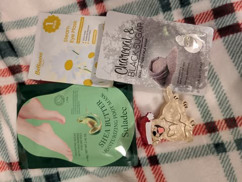 🎄💋 Beauty & Bliss – Your Holiday Pamper Pack! 💋🎄 Treat yourself—or someone who deserves a little extra sparkle—to the Beauty & Bliss Christmas auction bundle! This delightful self-care set is packed with beauty essentials, pampering treats, and cozy holiday vibes, all wrapped up in an adorable Santa tote bag. ✨ This Blissful Bundle Includes: • Charcoal & Black Sugar Face Mask for a refreshing glow • Cooling Eye Mask to soothe and relax • Hydrating Socks for soft, cozy feet • Luxury Soap Bars for an elevated self-care routine • Shades Red Lip Gloss for a festive pop of color • Victoria’s Secret Amber Rose Perfume for a warm, alluring scent • Stylish Sunglasses • Yankee Candle for mood-setting fragrance • Cute Dog Hair Clip for a playful touch All bundled beautifully in a cute Santa tote bag, making it ready for gifting—or keeping for your own holiday pamper nights! ✨ Bid now and bring home some Beauty & Bliss this season!