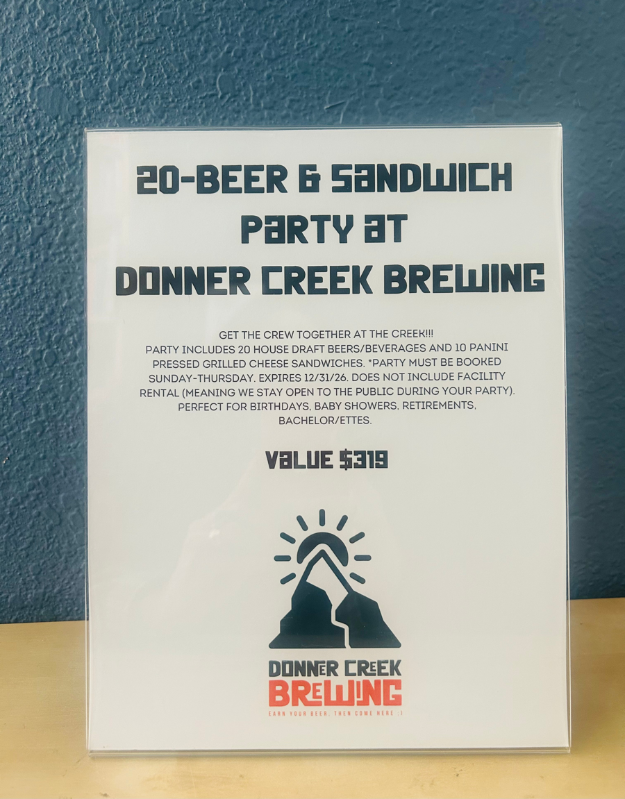 20 Beer & Sandwich Party at Donner Creek Brewing,