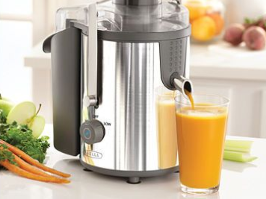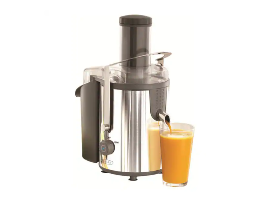 The BELLA High Power Juice Extractor features a 1000-watt motor with two speed settings, a large 3-inch feed chute for less prep, and dishwasher-safe, BPA-free parts for easy cleanup. It is designed for extracting fresh juice from a variety of fruits and vegetables, and includes a large pulp collector and juice jug. Donated by Astound