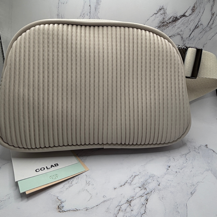 This trendy Co Lab Neoma bag in vanilla features a modern touch thanks to its softly pleated and striped material.
