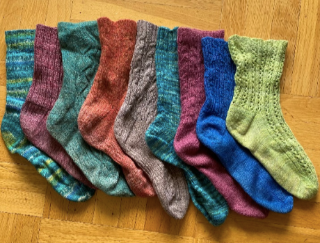 Would you like a pair of handknit socks made to fit your legs and feet? A pair of socks where you choose the yarn and pattern? I am offering my extensive pattern collection and my time to knit you the socks you have always dreamed of. We will meet for leg and foot measurements and to select the pattern. Then we will select the yarn at a local yarn shop or from an online vendor. You will purchase the yarn and - poof! - I will turn the yarn into socks.