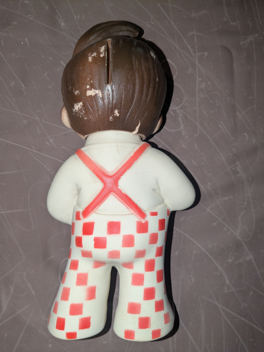 BIG BOY RESTAURANT'S 6 INCH SOFT PLASTIC PIGGY BANK - MISSING SO PAINT