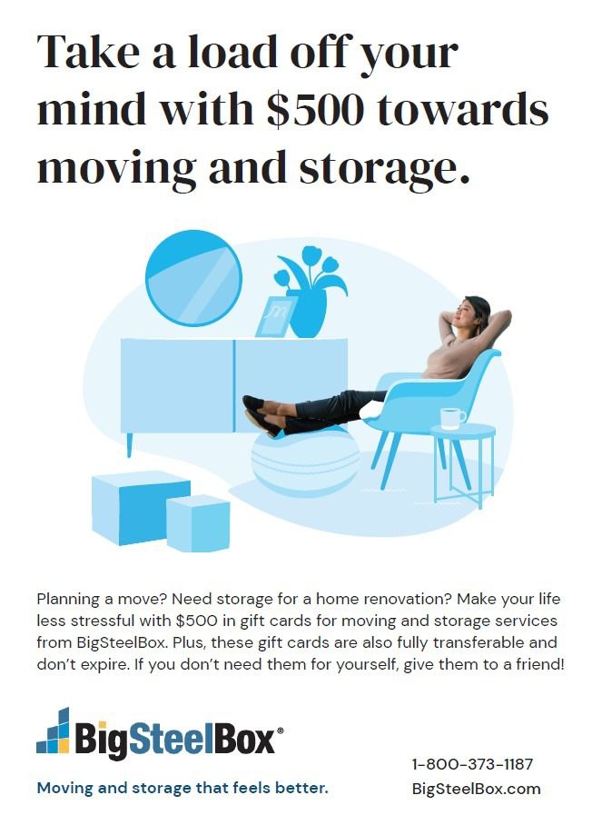 Take a load off with a $500.00 voucher towards monthly box rentals, making it easier than ever to manage your moving and storage needs. Whether you require deliveries, moves, or pick-ups, this auction item covers it all. If storage is required between moves, you can conveniently utilize the facility for secure handling and storage solutions. Don’t miss out on this chance to streamline your moving process with Big Steel Box! It is our mission to help make your moving and storage experience feel better.