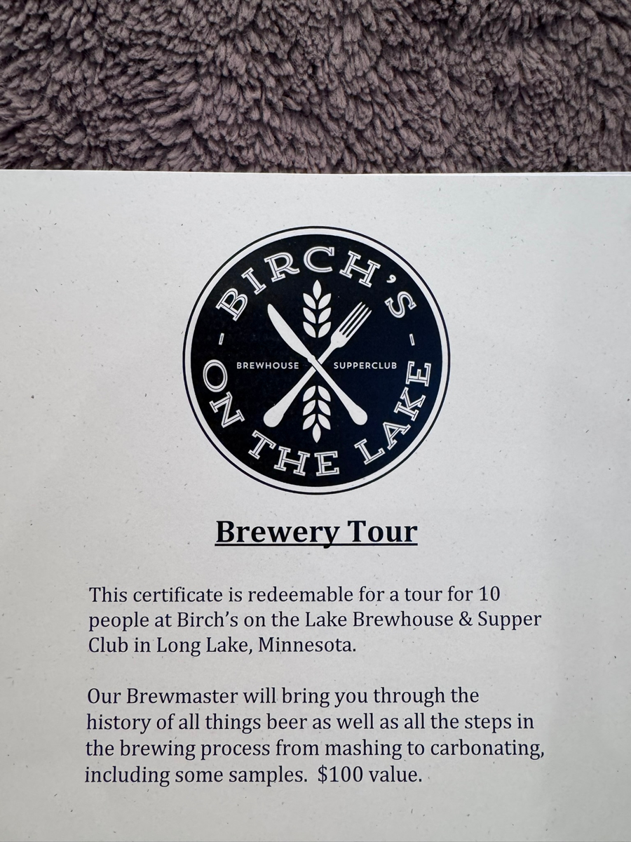 Birchs on the Lake Brewery Tour and Tasting for 10