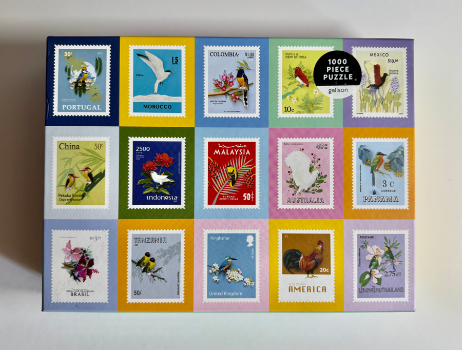 An array of bird stamps from around the world. From Galison Puzzles- 1000 pieces.