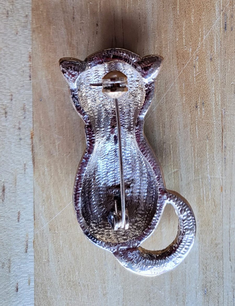 Add a dash of fun to your holiday apparel with this bejeweled black kitty pin! Measures about 1 1/4" x 3/4".