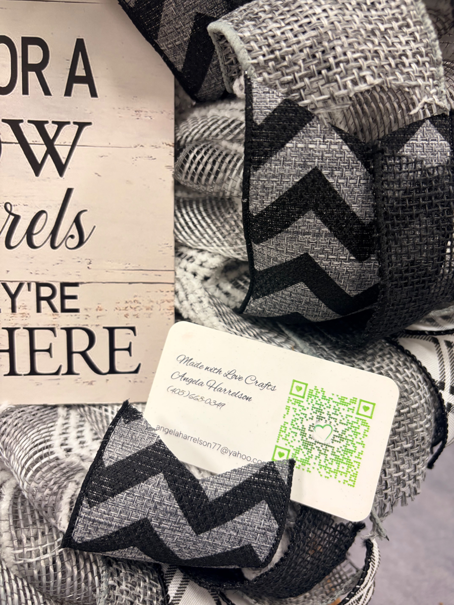 Gorgeous black and gray wreath by Made with Love Crafts.