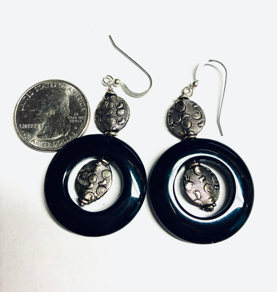 Black Onyx Donuts w/ Hand Crafted Silver bead Earrings