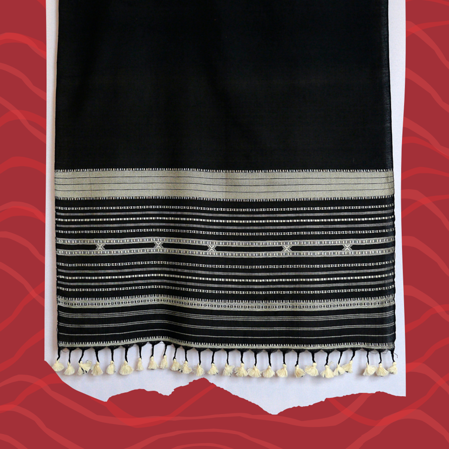 Black & White, Handwoven Bhujodi Stole from Kutch, Gujarat