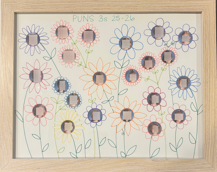 A beautiful and heartfelt keepsake! Each flower in this frame features a student’s photo at its center, symbolizing a year of growth and connection. A bright, meaningful way to remember this special class. 🌸