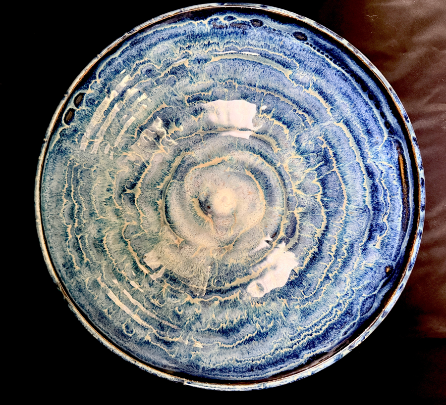 Thrown and glazed in the studio, Blue Drift captures the quiet motion of water through layered blue tones that pool and spiral toward the center.