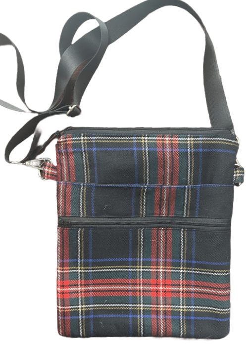 Crossbody bags handmade in Glasgow from recycled kilts.