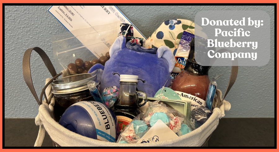 21oz Honey, 1/2 lb Blueberry Chocolate, Raspberry Vinaigrette, Strawberry Syrup, Blueberry Taffy, and more Blueberry goodies. Certificate for 20 lbs of blueberries!!