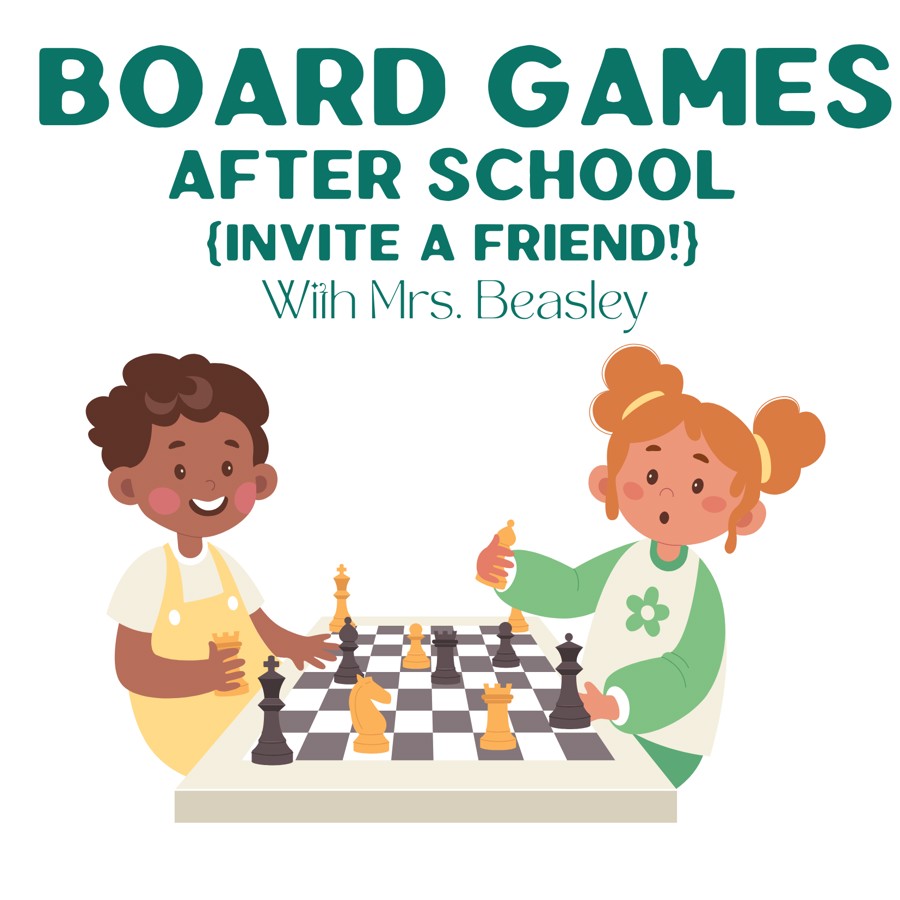 The winning bidder will join Mrs. Beasley after school to play some fun board games! The winning child may also invite a friend. This activity will take place on March 7, 2025 in Mrs. Beasley's Room from 3:00 p.m. - 4:00 p.m.